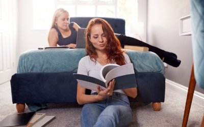 Shared sleeping spaces mean that residents share a furnished bedroom with others. Beds and basic furnishings are provided, and common areas such as kitchens, bathrooms, and living spaces are shared.